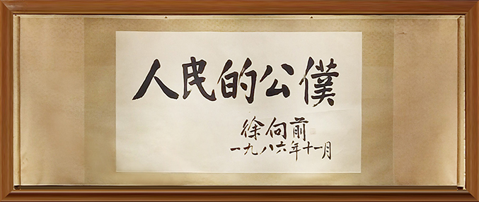 适逢祖国七十华诞,国家一片繁荣景象。为庆祝新中国成立七十周年,回顾历史,展望未来,北京华协文化发展有限公司将企业珍藏多年的革命文物资料策划成展。我们曾成功举办过《红旗飘飘》革命文物资料展,今年为喜迎祖国七十华诞,我们在《红旗飘飘》展的基础上,深入分析展品内涵与革命历史意义,同时我公司荣幸收到徐向前元帅之子徐小岩将军提供的很多珍贵革命文物,其中就有徐向前元帅的墨迹《人民的公仆》。这些革命后代亲属提供的实物以及他们的大力支持鼓励,再一次激发了我们举办红色主题展的热情,因此华协公司策划组织了《红色印迹——庆祝中华人民共和国成立七十周年》展,展览记述了从中国共产党建党初期到新中国成立后的艰辛路程,展开描绘了一段波澜壮阔的历史。